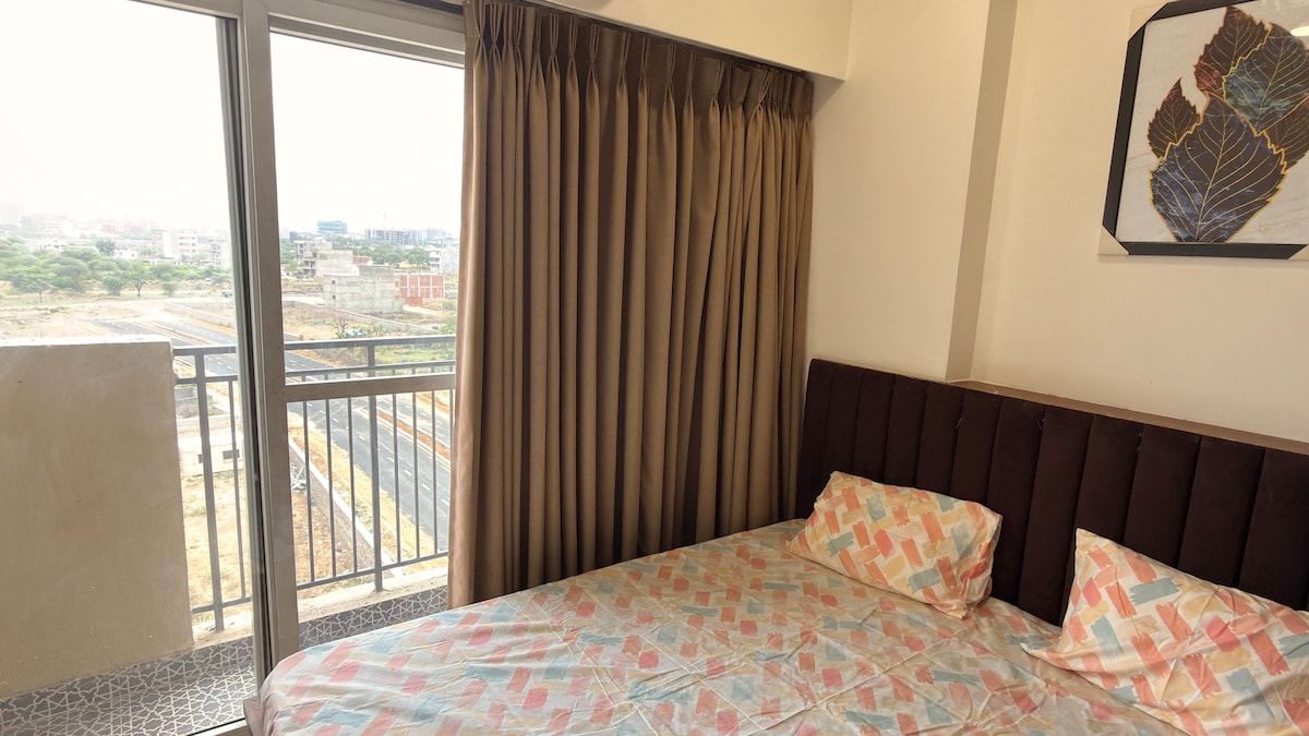 2 BHK Luxury Apartment with Spacious Interiors and Three Large Balconies Experience comfort and relaxation with your family and friends at this luxurious 2 BHK apartment. Fully furnished and equipped with modern amenities, this peaceful retreat is designed for the discerning traveler. This stylish place to stay is perfect for group trips. And all facilities available like a Home. We provide fully clean and hygiene product for our guest’s comfort.
