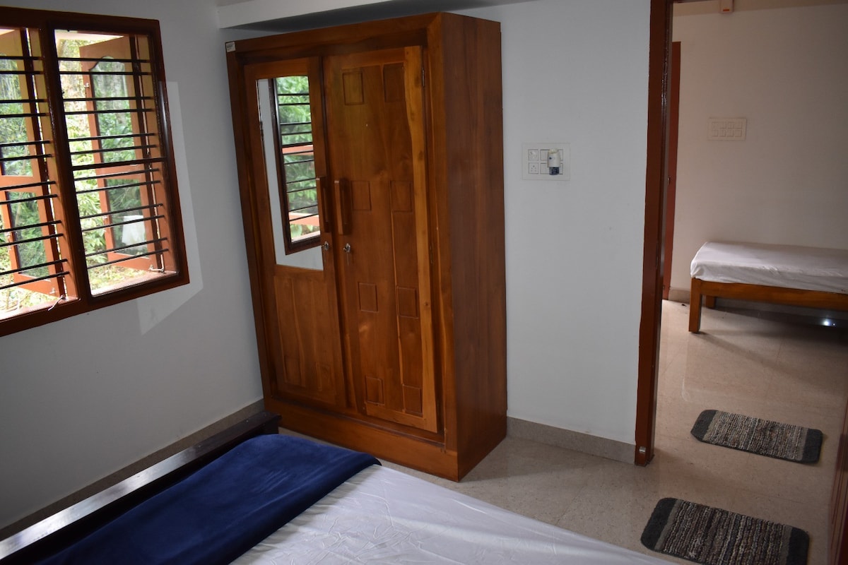Guestswill be allocated ground or 1st floor according to availability. Cool and comfortable two bedroom apartment has a true city feeling. The price quoted is for one guest, at the guest slot please mark the number of guests to get the exact price for your group. property is ideal for families, it comfortably fits four to six guests and is just two blocks from the famous Omkareshwara temple and fort. Enjoy a comfortable stay with easy access to all major tourist spots.