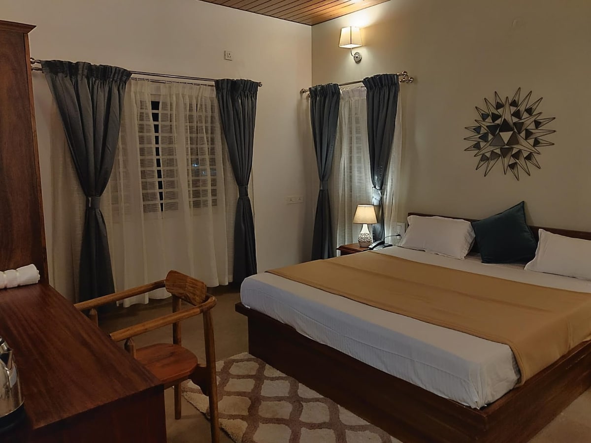 We are situated in the southern region of Coorg, surrounded by lush coffee plantations. Our charming cottages offer picturesque views of a hill, providing a delightful awakening. We have four separate cottages, each sharing the same layout but boasting unique decor. These cottages are equipped with both a king-size and a queen-size bed, ensuring comfortable accommodation for up to four guests. Couples have the option to reserve an entire cottage for their exclusive use.