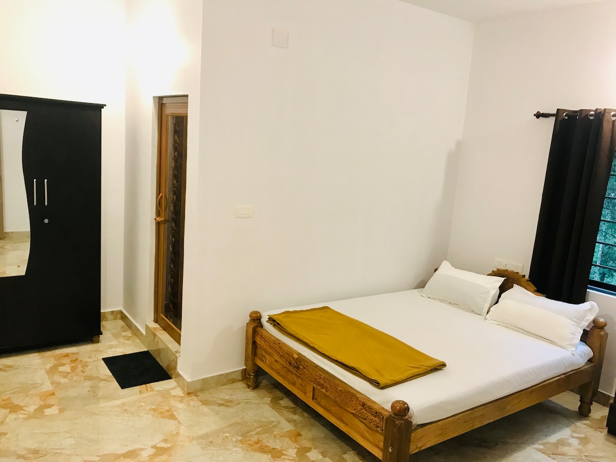 Step into luxury and comfort in our elegantly designed premium bedroom, nestled in the lush greenery of Coorg. This air-conditioned retreat offers a perfect blend of modern amenities and serene ambiance, ideal for couples, solo travelers, or small families seeking relaxation and refinement.