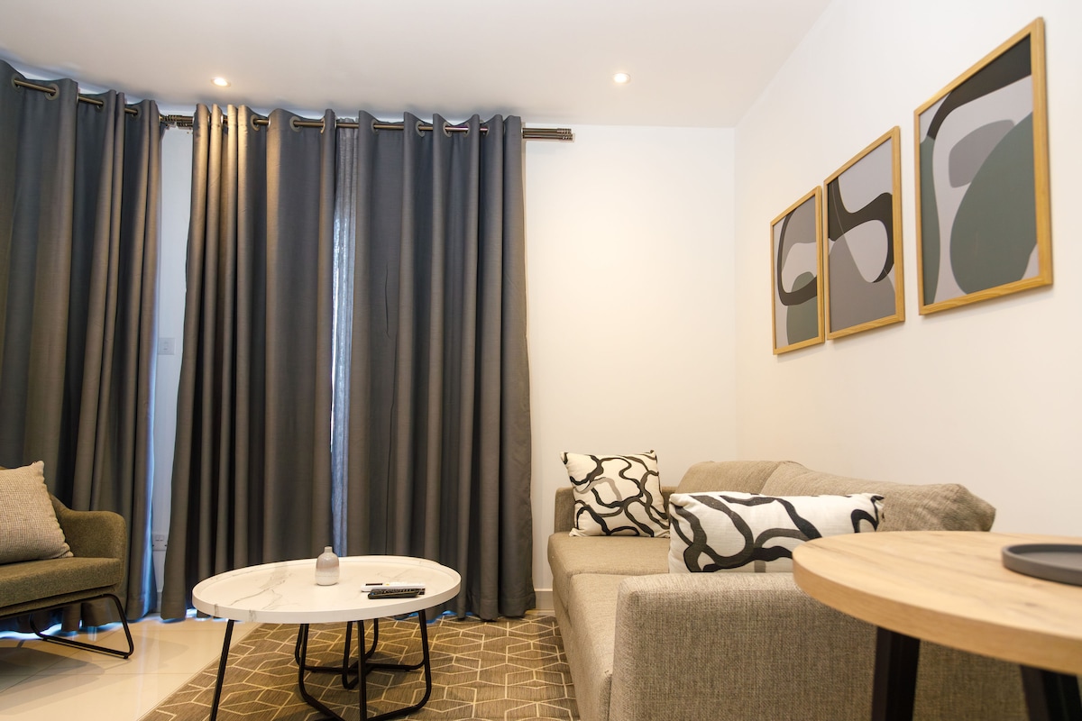 舒适现代公寓| 2卧室,带泳池和健身房,15分钟到机场