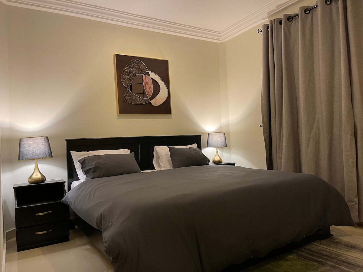 Enjoy your stay in this elegantly furnished 1-bedroom apartment in East Legon, Accra. The apartment is 14 minutes away from Kotoka International Airport and is close to The AnC Mall, Pulse Gym and Fitness, and several restaurants and eateries, including KFC and Pizza Hut. In addition to all the above, we have a standby generator and a water storage and pumping system, so you'll never have an outage of electricity or water.