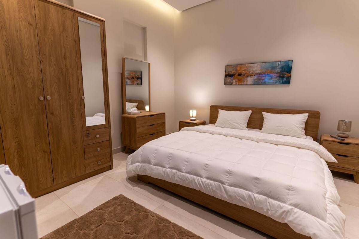 Welcome to the tranquility of Medina city Executive one-bedroom apartment with a full bathroom & a private entrance This place is ideal for those are in a business trip. This luxury residence is designed to provide our guests with comfort and luxury characterized by luxury furniture and a comfortable experience in terms of location and services, Due to its proximity to the central area behind Quba Main Street, which makes it easier for our guest to access all services, shopping and restaurants