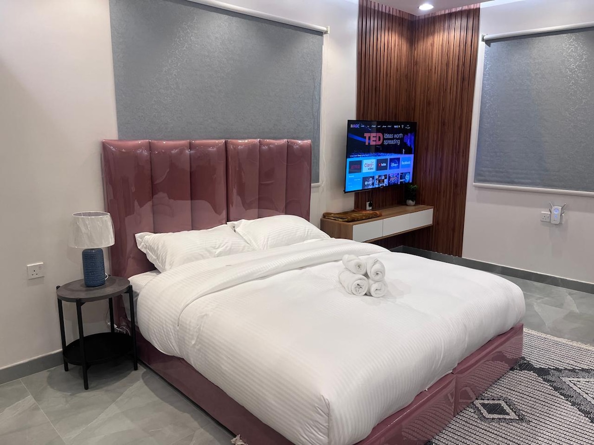 Welcome to the tranquility of Medina city Executive one-bedroom apartment with a full bathroom & a private entrance This place is ideal for those are in a business trip. This luxury residence is designed to provide our guests with comfort and luxury characterized by luxury furniture and a comfortable experience in terms of location and services, Due to its proximity to the central area behind Quba Main Street, which makes it easier for our guest to access all services, shopping and restaurants
