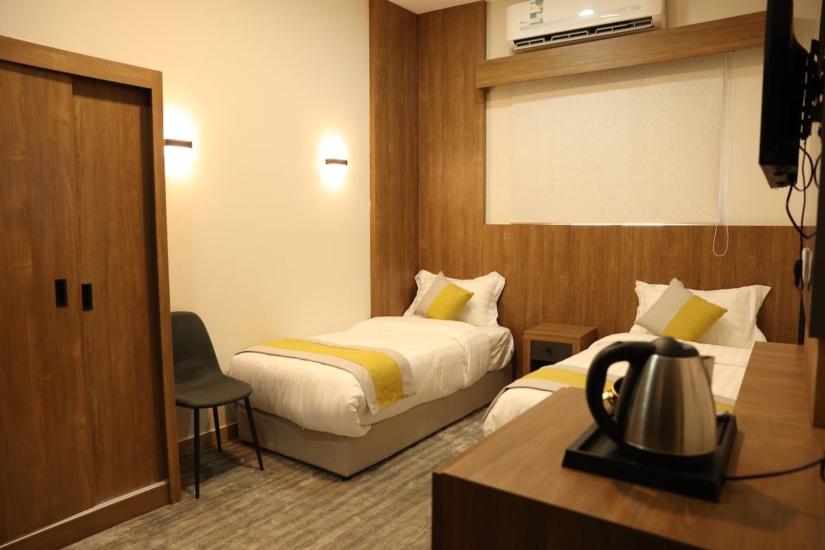 This furnished hotel apartment is located in the Al-Areedh neighborhood in Medina, offering a central location with easy access to all essential services. The apartment consists of two bedrooms, a spacious living room, a fully equipped kitchen, and a bathroom. The apartment is very spacious, providing comfort and privacy for guests. Right in front of the apartment is a walking path, perfect for enjoying a stroll, with numerous restaurants, groceries, and cafes nearby.