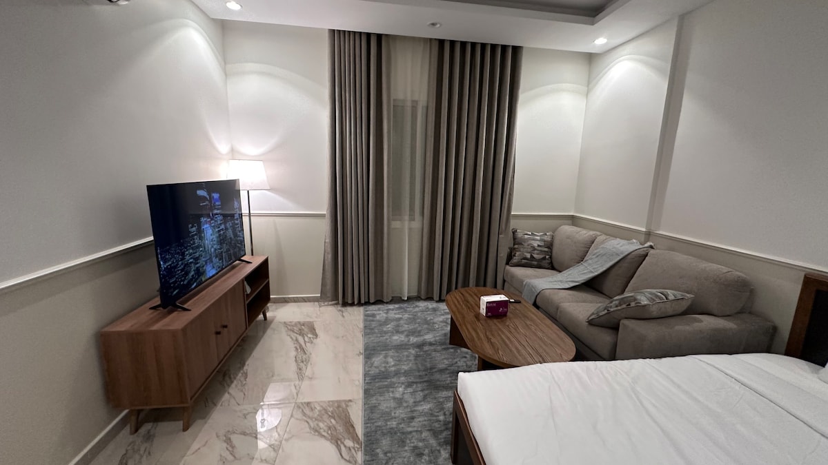 Luxury & Cozy Studio in Al-Qasr | Prime Location & Self Check-In Enjoy a stylish and comfortable stay in a modern studio located in the upscale Al-Qasr district. Ideally situated near key landmarks and services, the space features a king size bed, smart TV, warm lighting, elegant decor, and a compact kitchenette with a microwave — perfect for solo travelers or couples seeking comfort place. Book now and enjoy a premium stay in the heart of Medina!