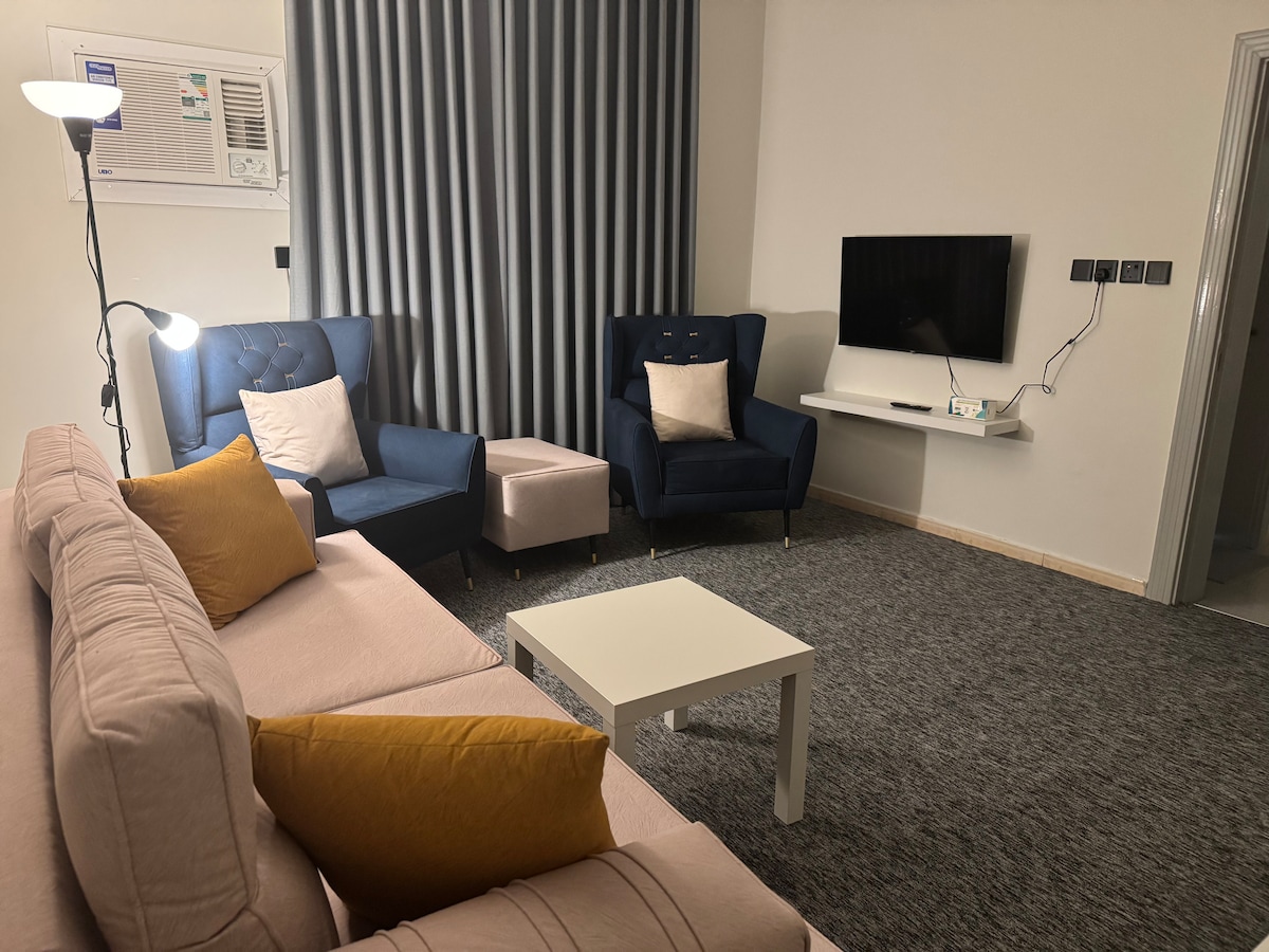 شقه فندقيه من غرفه نوم سريرين وصالة مريحة