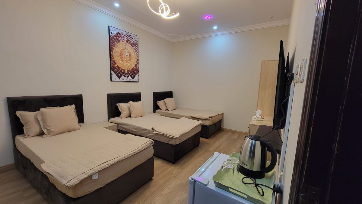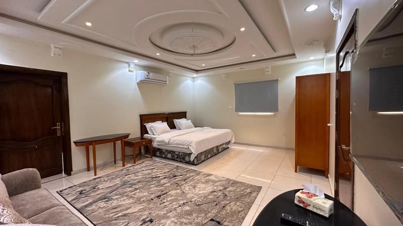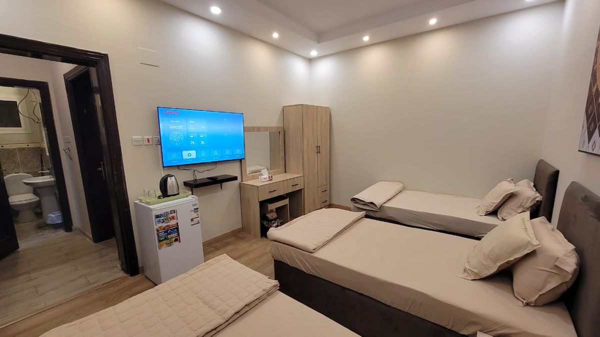 Luxurious Medina Accommodation Units Indulge in unparalleled comfort in spacious 650m² units ideal for families near the Prophet's Mosque. Relax in 4 lavish suites boasting premium beds, luxurious bathrooms, and private balconies. Work or unwind in spacious living areas, indulge in gourmet delights in the fully equipped kitchen, and gather in separate men's and women's salons. Each Apartment's offers a unique haven: Main Suite: Unwind in opulent 90m² with a 2m bed, and a smart TV.