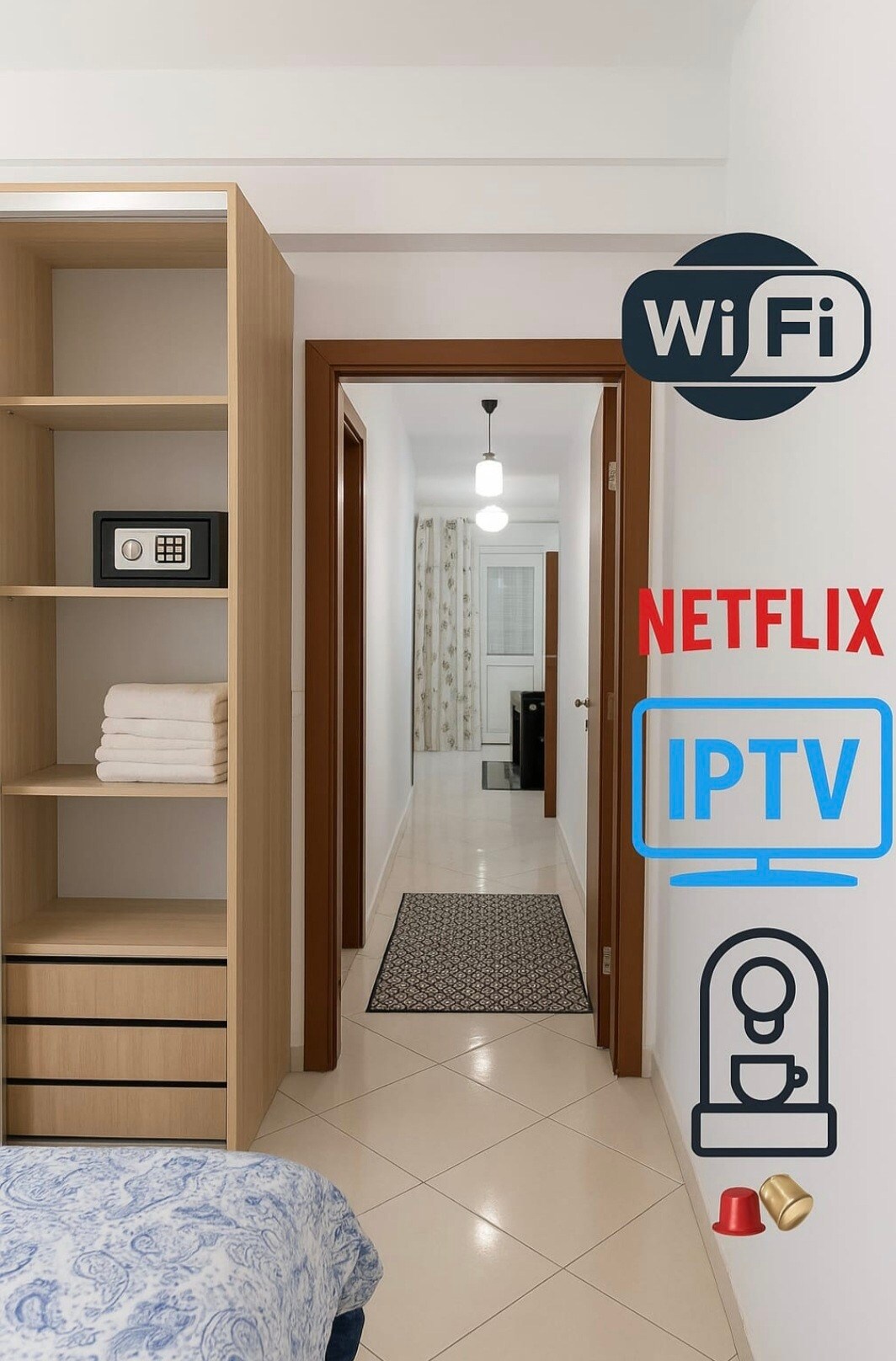 Luxurious Studio Apartment, situated in the upscale and safe, Val Fleuri neighborhood, this space can take up to 3 travelers. The apartment is in a new secure building. It's furnished and decorated to guarantee a comfortable luxury experience. It's in the Maarif district, which has more shops than anywhere in Casablanca. The place is in 50 meters to a tramway station, and a public garden, and you can find all stores near the building.