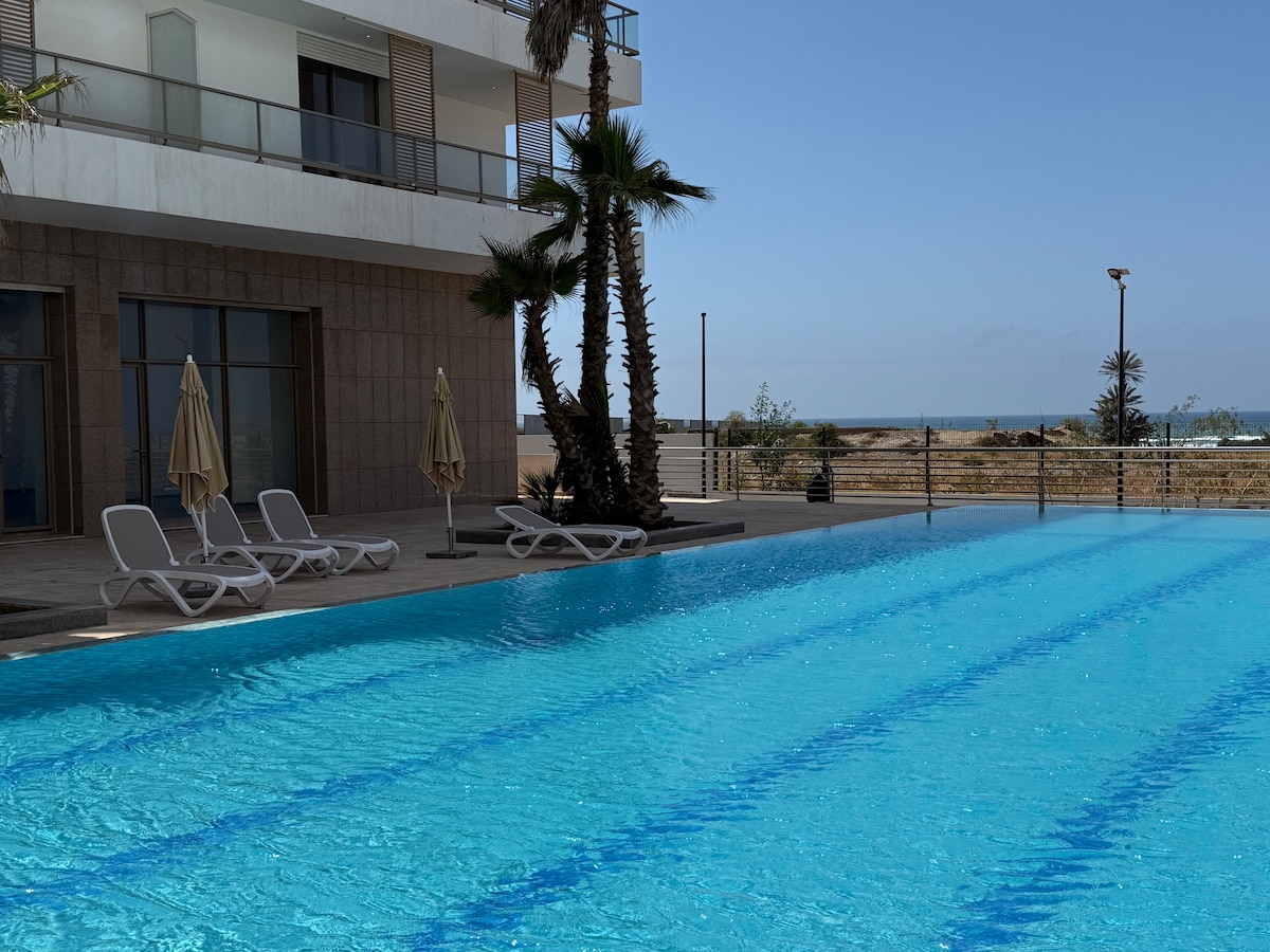 Appartement élégant, tout neuf, dans une résidence calme et sécurisée au cœur de Ain Diab, à 5 min de l'océan. Ce logement dispose de tout le confort moderne, WIFI Fibre optique, Smart TV, Netflix, IPTV, cuisine entièrement équipée, parking sécurisé, climatisation. Décoré avec élégance et raffinement, ce logement vous fera vous sentir comme chez vous.