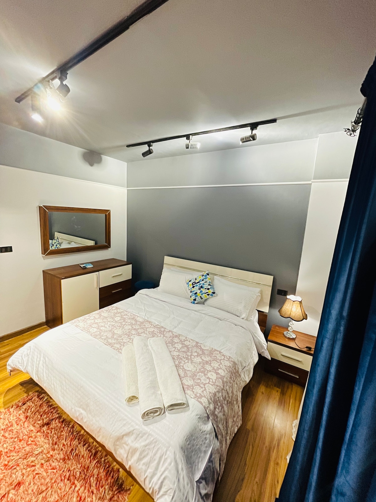 Come stay in this bright well aired apartment right in Madinaty. It has two cozy bedrooms with soft, comfy beds—one with a double bed and one with two singles. There’s a private balcony where you can enjoy open views. Full kitchen at your service. Living room with a soft sofa and a big TV. There are 2 full bathrooms. You’re just a short walk from the All Seasons Park and Craft Zone, so exploring the local area is super easy. This home gives you comfort and a great spot to enjoy Madinaty.
