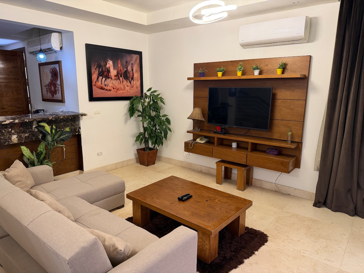 Relax in this calm, stylish space. An entire apartment, 2bd rooms, ground floor, in the most stylish area in Madinaty B10, walking distance to all season park mall b10. And 5 minutes away to Open Air Mall 🎉 Enjoy your morning American coffee with french press with house blend coffee aroma 👌 that made with love 💕 while watching your favorite movie on Netflix 🍿