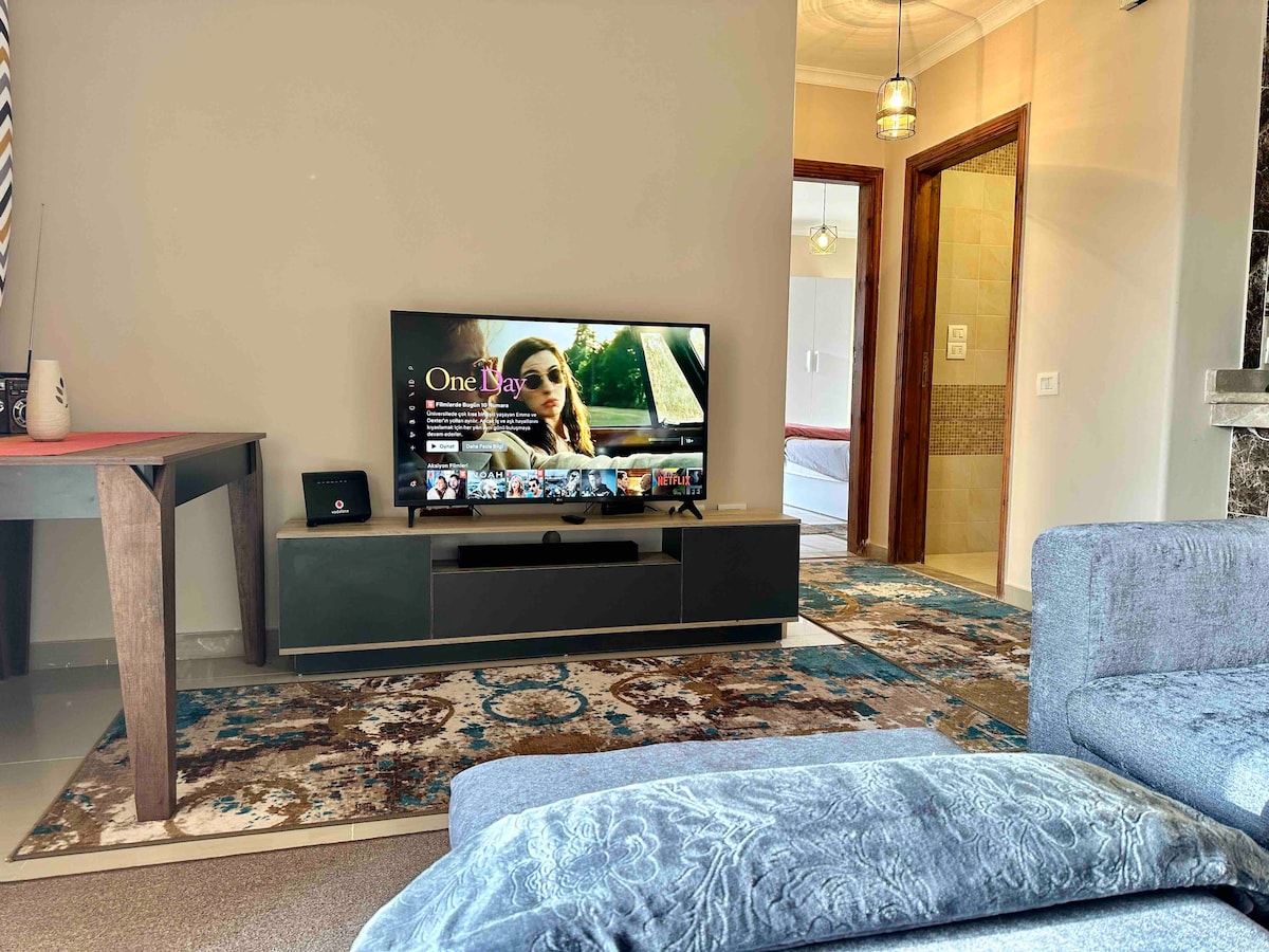 This spacious apartment is fully furnished and equipped with everything you need for a comfortable stay. Relax and watch your favorite movies and TV shows on the sound system with access to Netflix, beIN Sports, Shahid, Watch it, and Starzplay. Located in a central location, close to all the major attractions. Just a short walk for bus station , the shops, and the restaurants. Whether you're traveling for business or pleasure, this modern, stylish apartment is the perfect place to stay.