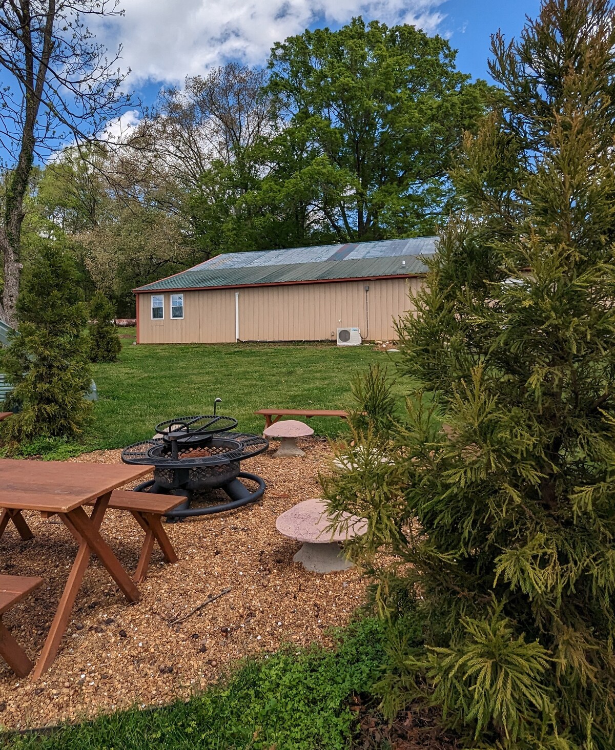 Small gatherings are allowed - but you MUST add the correct amount of guest failure to do so will get your trip CANCELLED- please message us before to confirm guest amount *7 acres of Land -complete privacy *self check in *2 bedroom + large bonus room ( 7 Beds total) *3 person Hot tub - and jetted jacuzzi tub in king room *massage table and chair *Professional Cleaned & Sanitized *BBQ grill *Fully Stocked Kitchen *Washer & Dryer *Smart Tv’s fast WiFi at