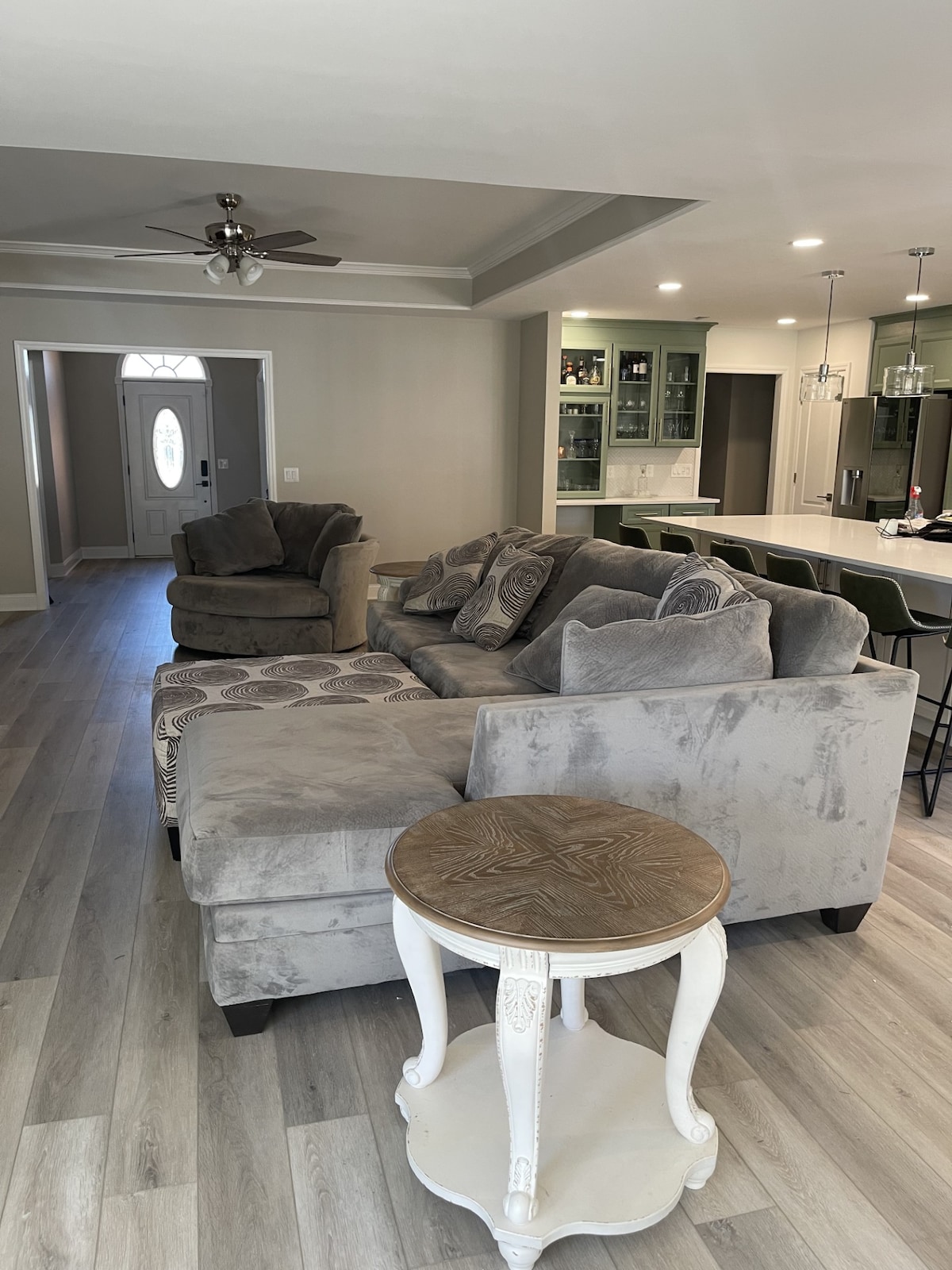Hardwood, tile, & LVP; no carpet! Welcome to our new, centrally located home in Huntsville, where comfort and convenience meet. Whether you're here for business or pleasure, our well-appointed 3-bedroom retreat is your ideal base for exploring all that the Rocket City has to offer! TVs in all bedrooms. Fully fenced backyard. 4k TVs in everywhere! 75" TV in LR, 55" in MBR, & 50" in other 2 bedrooms. Check out our other listings nearby: http://www.airbnb.com/h/hnt2 http://www.airbnb.com/h/hnt3