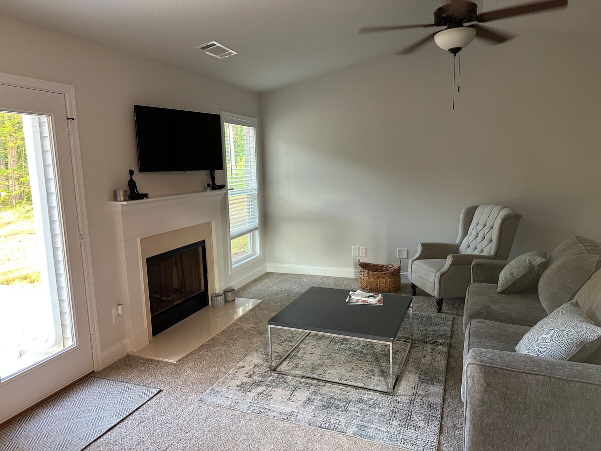 Welcome friends, family & business travelers to this spacious home surrounded by 40 serene rural acres w/ a view of a classic red barn. Newly renovated open floor plan, modern kitchen w/ 8’ island, gas fireplace, dining table seating 10, and 77” TV. Covered & open patios w/ gas grill & new outdoor sound system. Many spaces to gather as a group or retreat to 3 private roomy bedrooms (2 w/ TV's). Ideal home for GA football games, family events, business travel or simply Rest - Relax - Recharge.