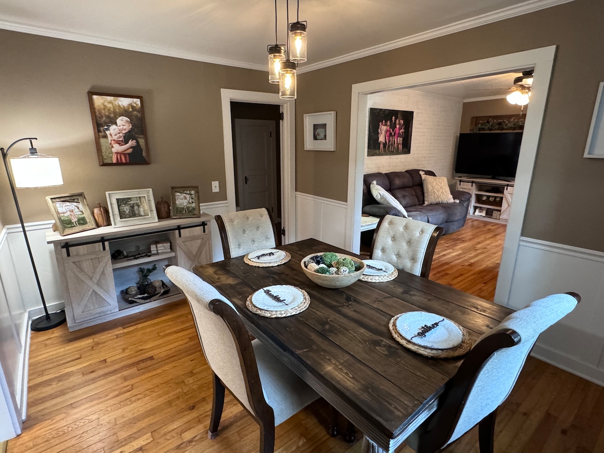 Spacious 6BR farmhouse on 1.5 acres, just 10 mins to UGA & 1 min to Ingles. Ideal for large groups, it offers a fully stocked kitchen, open living area, multiple baths, and a long driveway that fits 10+ cars. The ultimate Mancave features a 10-seat poker table, darts, Nintendo Switch 2 & more. Outside, enjoy the horseshoe pit, outdoor firepit, and plenty of space to relax. Perfect for game days, family gatherings, weddings, or a peaceful Athens getaway!