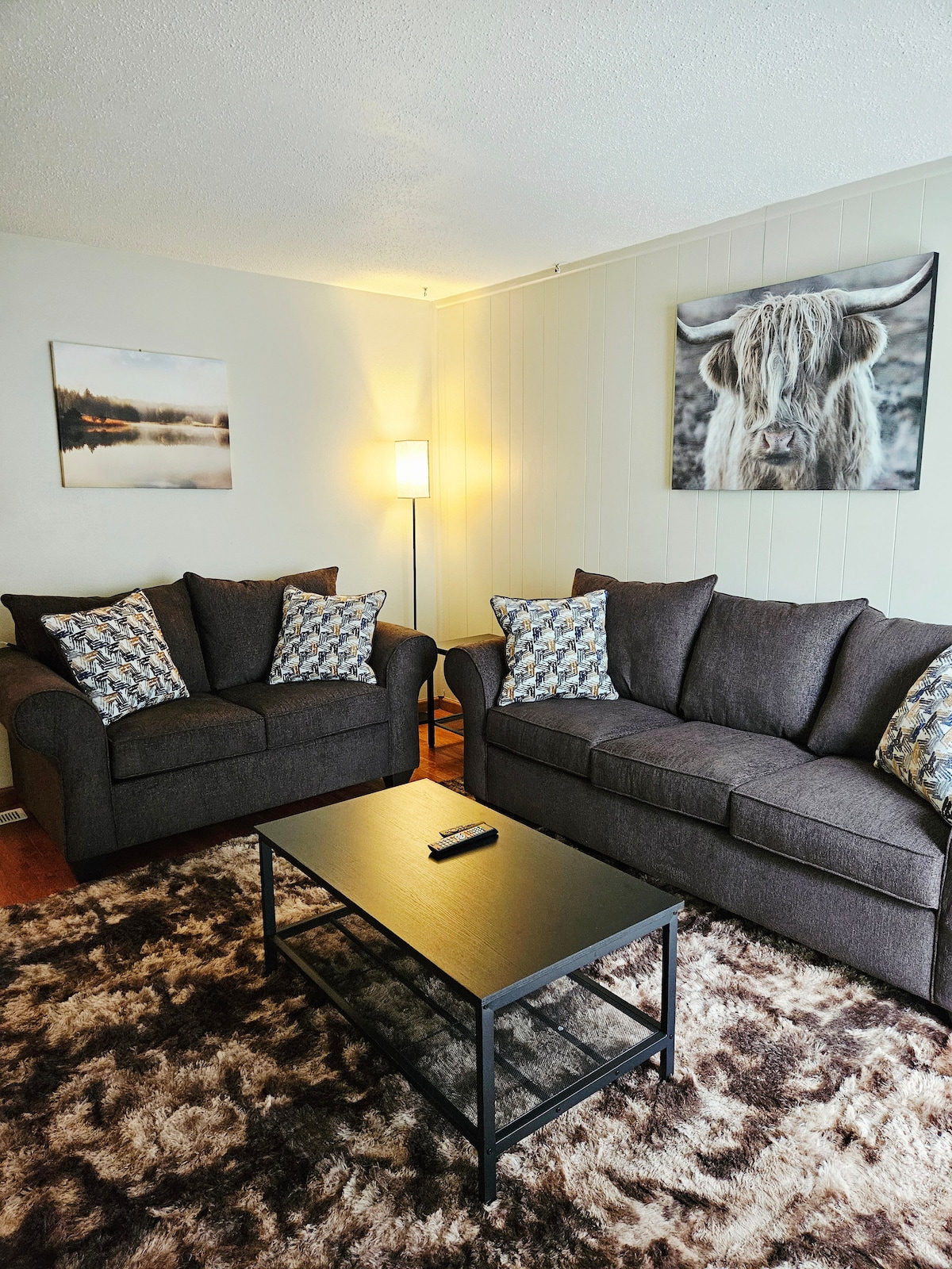 Welcome to our charming two-bedroom ranch conveniently located off Interstate 270 in a quiet neighborhood of Granite City, a mere 15-minute drive from downtown St. Louis. Unwind in style with full kitchen amenities, a Roku Smart TV, high speed Wi-Fi, secure off street parking, plush king and queen beds, a cozy pullout futon in the main, plus a well-appointed laundry room with full-sized washer and dryer.