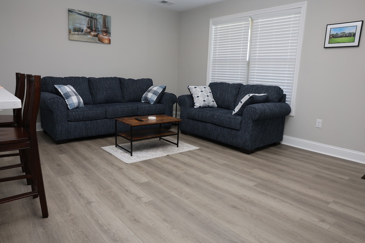 Stay in this newly renovated, freshly furnished 3 spacious bedroom 3.5 bathroom home in the heart of Richmond, KY. This home has many luxury features like a sunroom, granite countertops, and is walking distance to Eastern Kentucky University’s Campus. Included is a Smart TV in the living room, TVs in 2/3 bedrooms, adjustable AC/Heat, Serta Mattresses, and luxury furniture perfect for relaxing. We appreciate you staying with us, and feel free to reach out at any time during your stay!