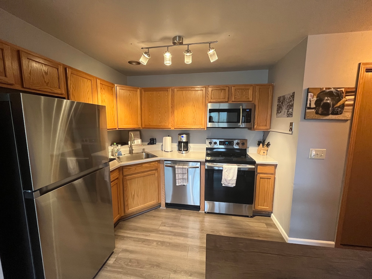 Our condo is the perfect basecamp for your Big Sky adventures! Comfortable for a family or 2 couples, it’s equipped with everything to enjoy your stay. We totally remodeled in 2018, so everything is new. Enjoy a fully equipped kitchen, washer/dryer, pull-out couch, cozy gas fireplace, two bedrooms with queen beds & 2 full baths. We’re right at the end of skier parking - walk out our building, cross the road and hop on the free shuttle! We invite you to enjoy our condo when we’re not there!