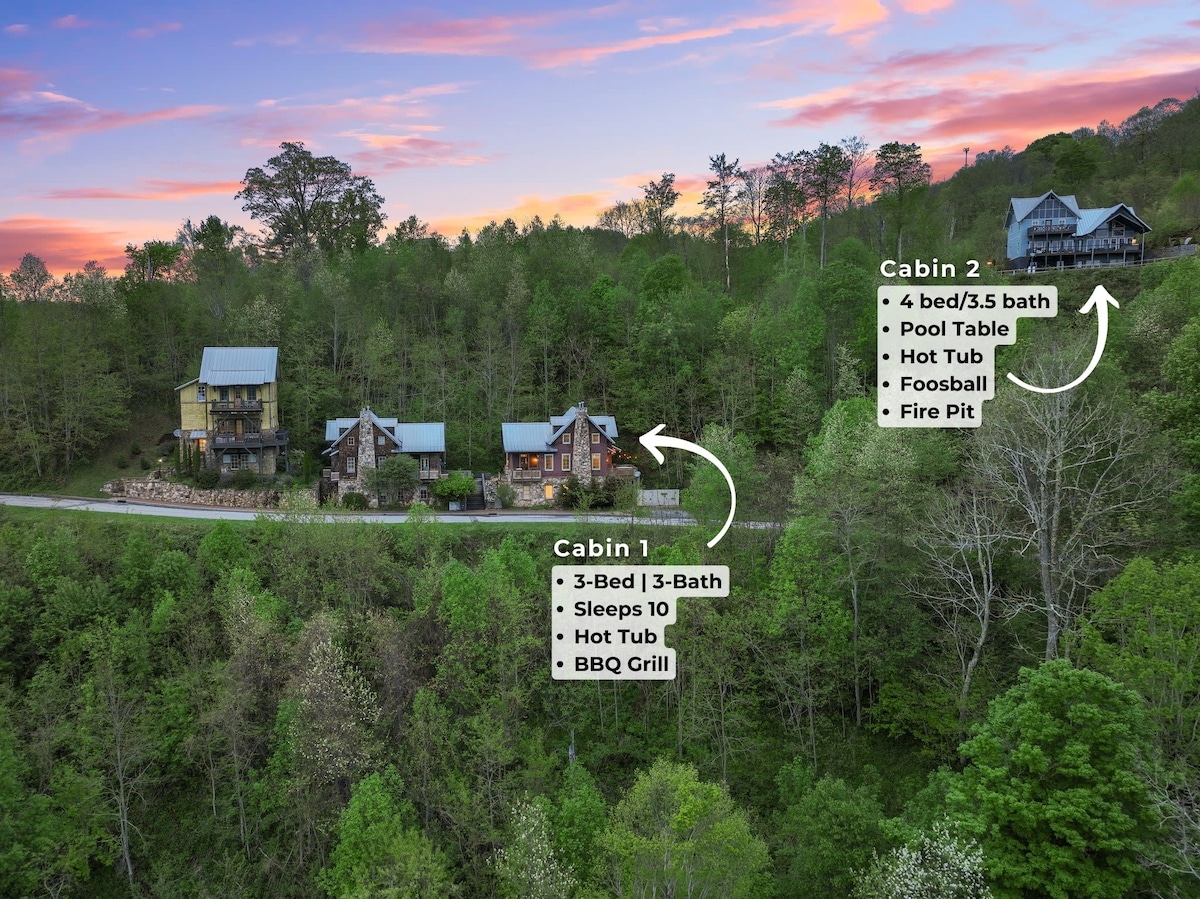 2间小木屋,景色尽收眼底~热水浴缸~台球桌