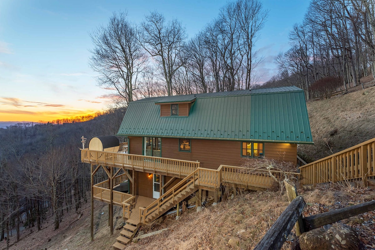 阿什维尔度假小屋,带热水浴缸,可欣赏日落/山景