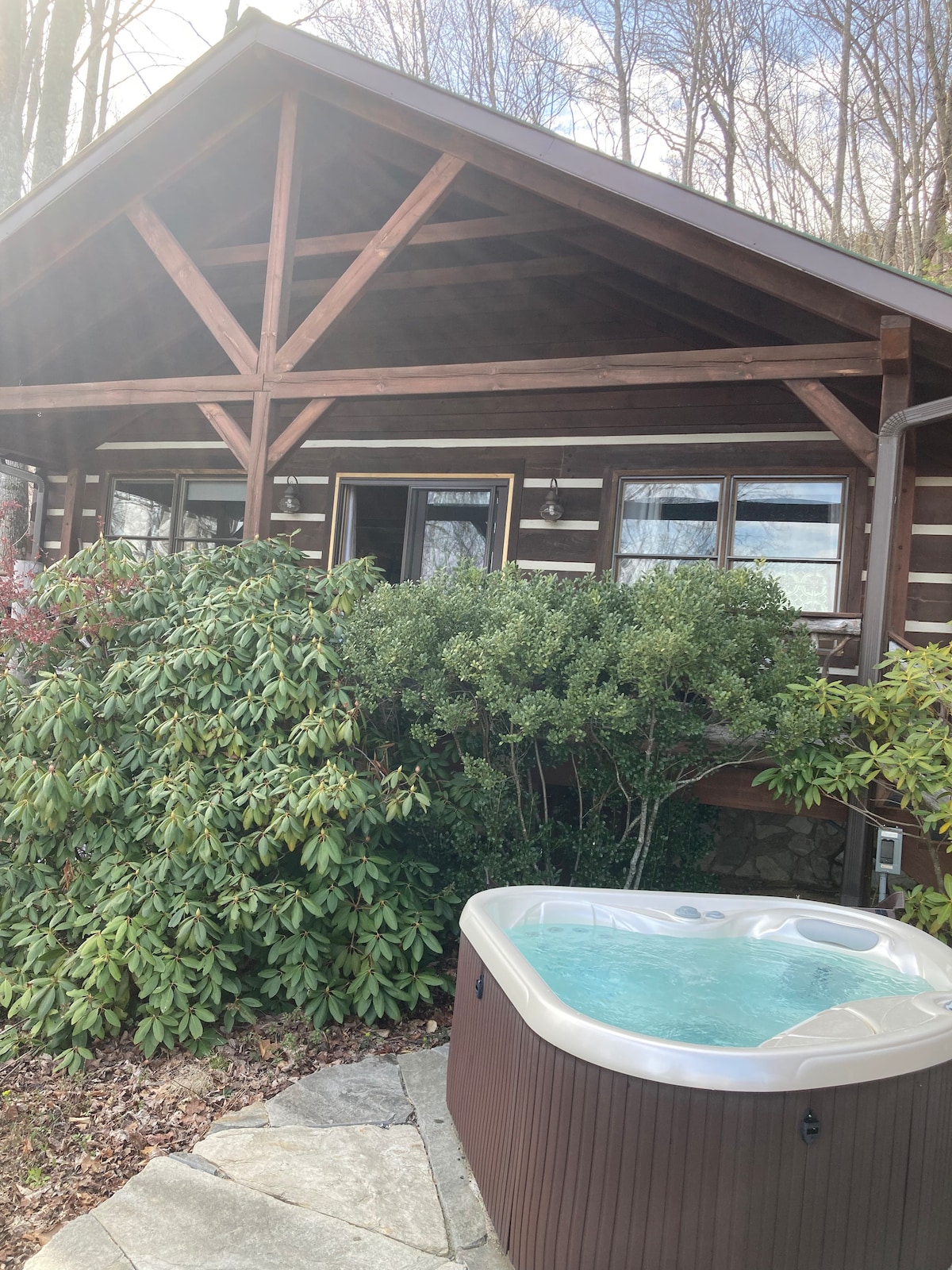 Enjoy serene country living while having the convenience of amenities at Mars Hill, Marshall, Hot Springs and Weaverville. The cabin is 3.9 miles from I-26 and 22 miles from downtown Asheville. Relax on the screened in porch while soaking in the hot tub. View the turkey & deer roaming the area. Watch TV while sitting by the gas logs. Enjoy excellent dinning, hiking, rafting, biking, snow skiing, and site seeing In the picturesque Blue Ridge Mountains of Western North Carolina.