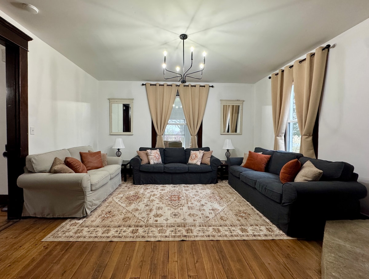 Built in 1882 the unique charm is still within this duplex . Settled in the heart of South Charleston, a quaint little village nestled between Columbus and Dayton, Ohio . Very quiet neighborhood with plenty of off the road parking . This apartment is a 1 bedroom 1 bath . It can sleep up to 6 guests with a queen bed , twin futon, and a twin chaise lounge .I do offer a queen blow up mattress if needed !Equipped with a washer and dryer , all kitchen appliances and free complimentary coffee bar .