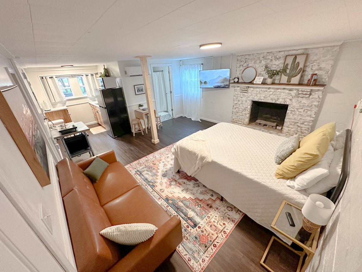 Have you ever wondered what it would feel like to live in a tiny home? Our modern day studio is only 270 square feet, but has all of the common amenities found in much larger houses. Experience the "Tiny House Movement" for yourself in our small NYC themed studio. - Only 2 miles from Liberty University (LU) and 5 miles from University of Lynchburg (LC) - 4K TV with Netflix, Sling, and Blu-ray - Queen bed - Twin pull-out sofa - kitchenette - luxurious shower - washer/dryer - 45' from main home