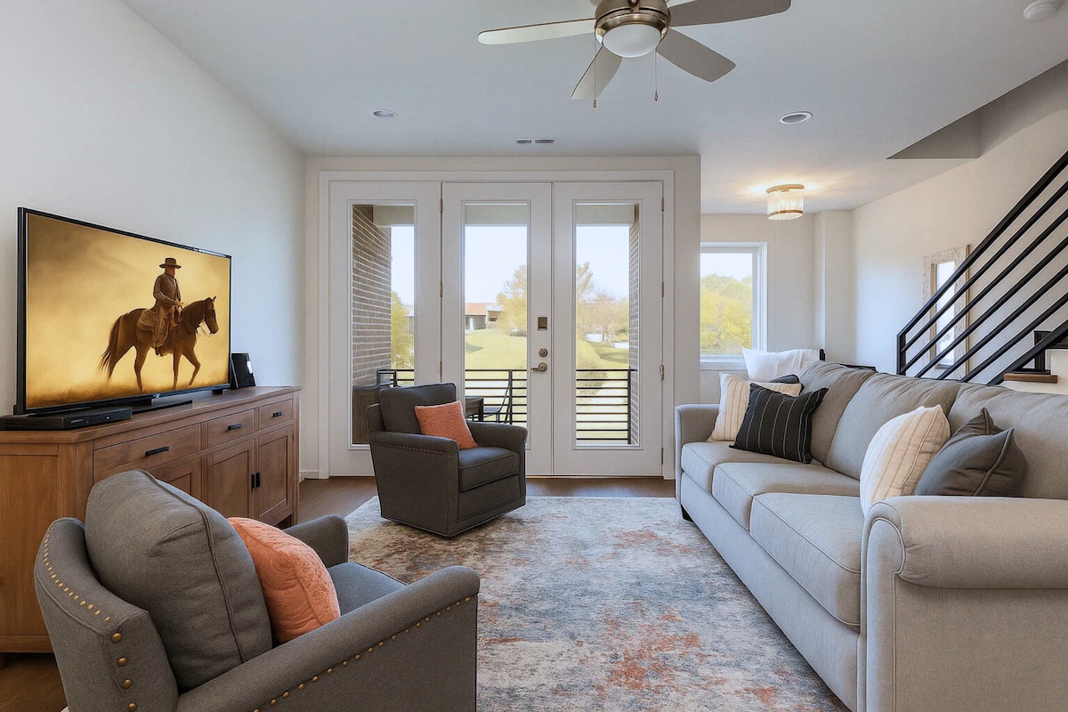 Modern townhome in a quiet, friendly East Nashville townhome complex. Perfect for 2 couples or a small group of friends! Both bedrooms have their own private bathroom. Huge great room perfect for entertaining with 65" 4k UHD SmartTV. Hardwood floors throughout, well equipped kitchen with upgraded stainless steel appliances, high-quality sheets/towels, attached 2-car garage, and 3rd floor privacy balcony! Only a 6-minute Uber/Lyft ride to downtown!