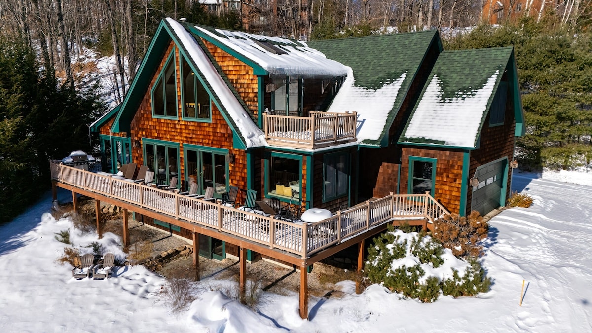 Escape to Valley Vista Lodge, our family-friendly White Mountains chalet with panoramic mountain views and 3,000+ sq. ft. of space. Relax in the private covered hot tub, cozy up by the fireplace, or spread out across five bedrooms. Perfect ski rental near Attitash, Cranmore, and Wildcat, just 3 minutes from Story Land and 10 minutes to North Conway shopping. Ideal for multi-family getaways, ski weekends, and summer adventures in the mountains year-round.