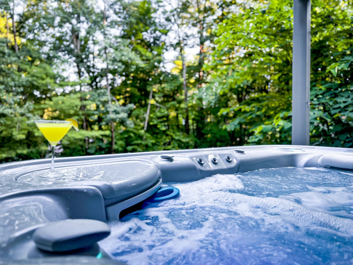 The goal is for you to relax, recharge, enjoy & breathe. We offer a private 3 person HOT TUB , seasonal outdoor warm shower& chiminea firepit , infrared SAUNA, 72" freestanding bathtub for the ULTIMATE spa experience. King bed with an adjustable & vibrating bed base. The cozy 600 sqf home is equipped with everything your heart could desire. Artistic Design around every corner. BOHO swings on the private porch. We abutt a 13 ac conservatory land with walking & hiking trails off the backyard.