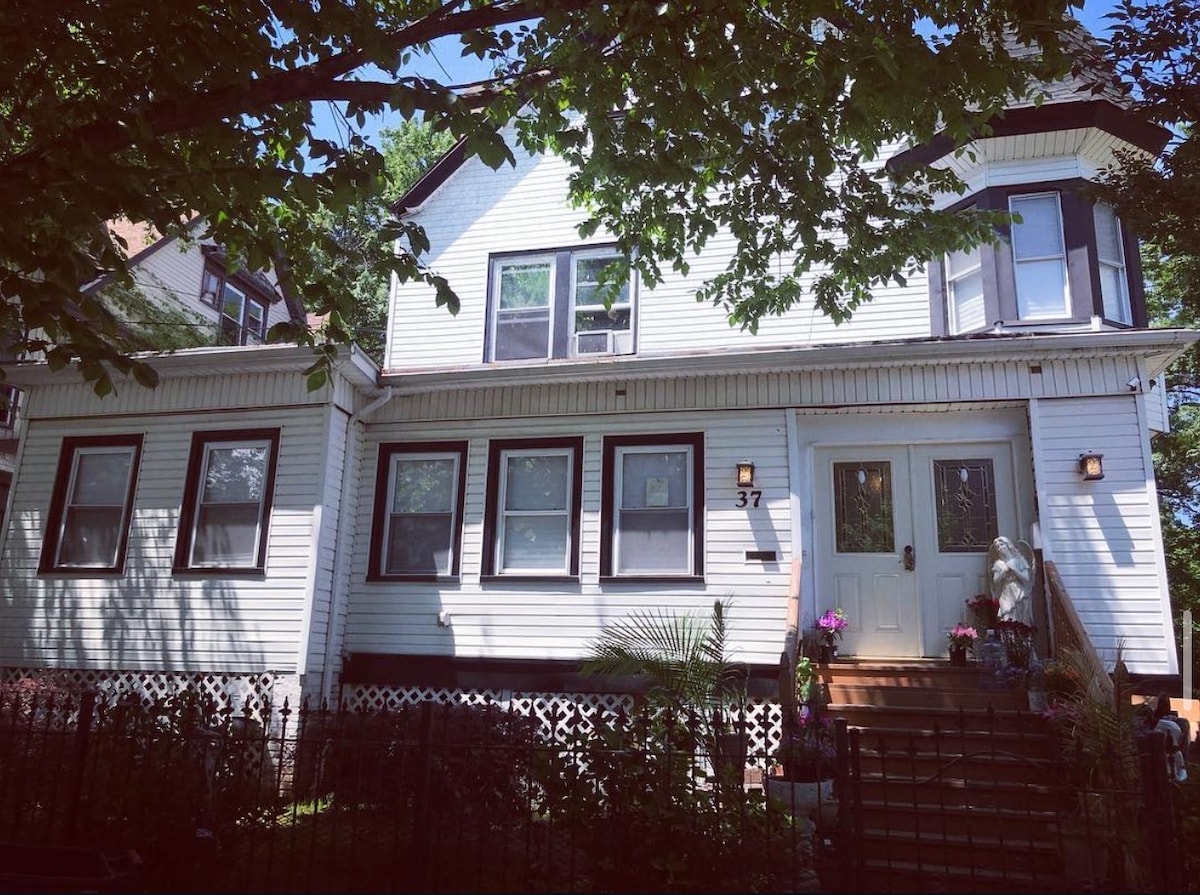 Welcoming all guest for a comfortable stay in a 2-floor walk up apartment accommodating 4-6 people. This unit is the ideal place for your visit whether it is for business, family or a self-rejuvenating stay. A safe place away from home for all occasions. It’s stocked with kitchen cutlery, dishes, WiFi, pots, coffee maker, toaster oven, microwave, refrigerator, and stove. Linen and towels are provided. 12 minutes away from the prudential center and 15-20 minutes away from American Dream.
