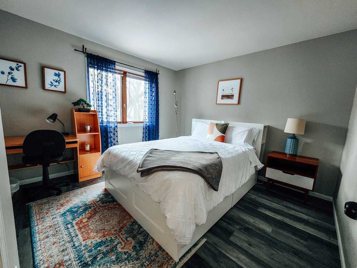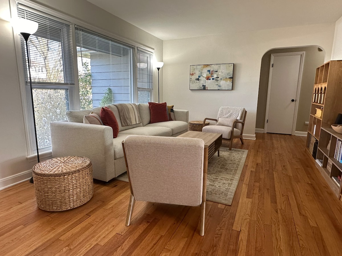 • NEWLY RENOVATED SPACE. • Two floor upper unit in a private home • Private backyard with patio & fire pit • Flatscreen TV in living room with Chromcast and Antenna. • Luxury Mid Century Modern Stereo Console bluetooth • 20+ classic albums to listen to (jazz, rock, classical) More Avail Locally! • Access to thousands of albums at several nearby vintage vinyl stores • Electric fireplace w/ multi heat settings • Full Size Kitchen, Full Size Appliances, Fully stocked, Keurig • Vintage Bar Cart