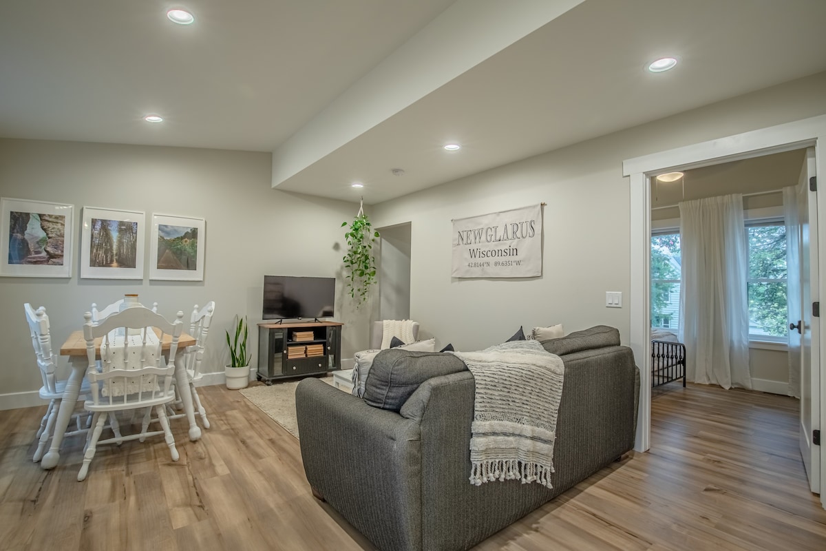 Stay in your private 3BR, 2BA section of our lakefront home. Paddle from the dock, relax in the hot tub or sauna and enjoy mornings on the balcony with coffee. You’re moments from Willy Street restaurants and right on the bike path. Inside, find a full kitchen, comfy living spaces and parking. Spend days on the water or exploring the city and evenings grilling or roasting marshmallows by the fire. Paddleboards included. Pontoon rental available in warmer months.