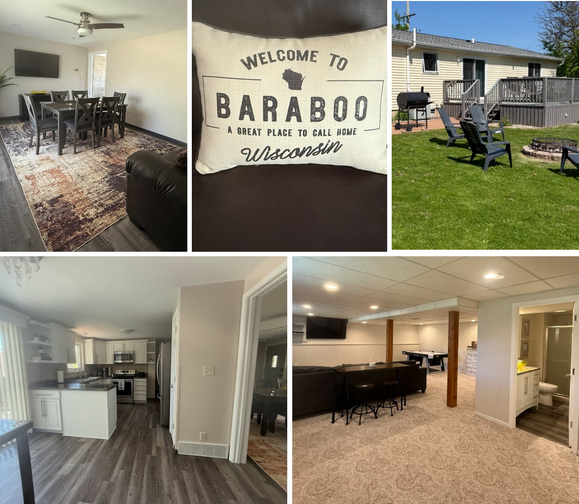 Centrally located just 15 minutes to the airport, 17 mins to downtown Madison, 45 minutes to Devil’s Lake, an hour to Milwaukee. Only a mile from dozens of restaurants, Costco, Target, and a Marcus Palace theater. Feel recharged when you sleep in the luxury hybrid beds. Be at home on the patio with a drink in hand while watching the fire table and cooking on the Weber gas grill. It work calls, no worries - plug into the docking station complete with keyboard, mouse and ultra wide monitor.