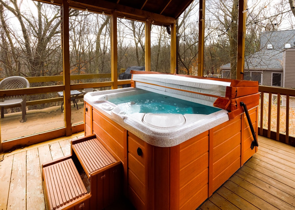 家庭冬季乐趣!热水浴缸-壁炉-游戏室!