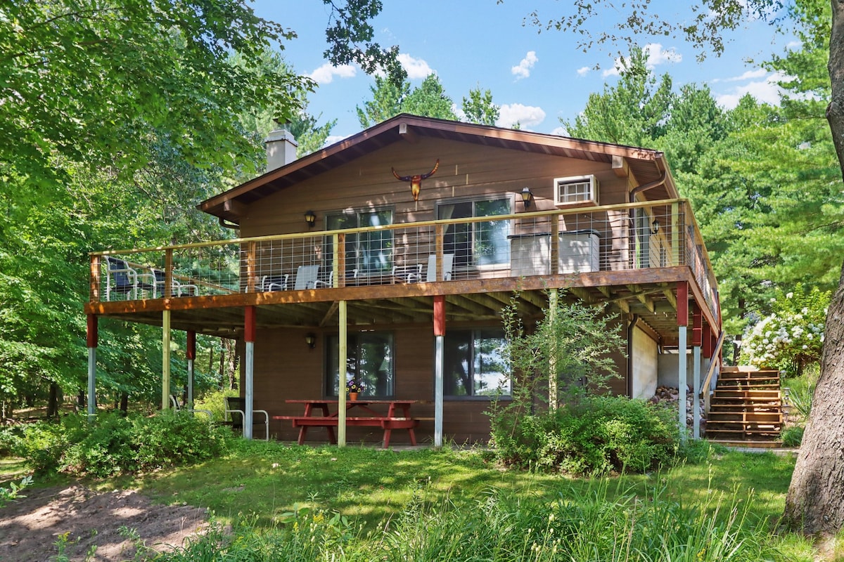 Best sunrises west of the Atlantic. Close to Madison (30mins), Milwaukee (85mins) and Chicago (120mins) Rustic cabin feel, Vaulted ceilings, Single over Full Bunk bed, queen, full and leather couch and room for air mattresses. Perfect for 1 to 8 guests. Super large shared backyard leads to the lake with a sandy beach. (unique property comprised of a 2br/1ba cottage and a house 2br/2ba joined together by a Great Room built to seamlessly connect the two)