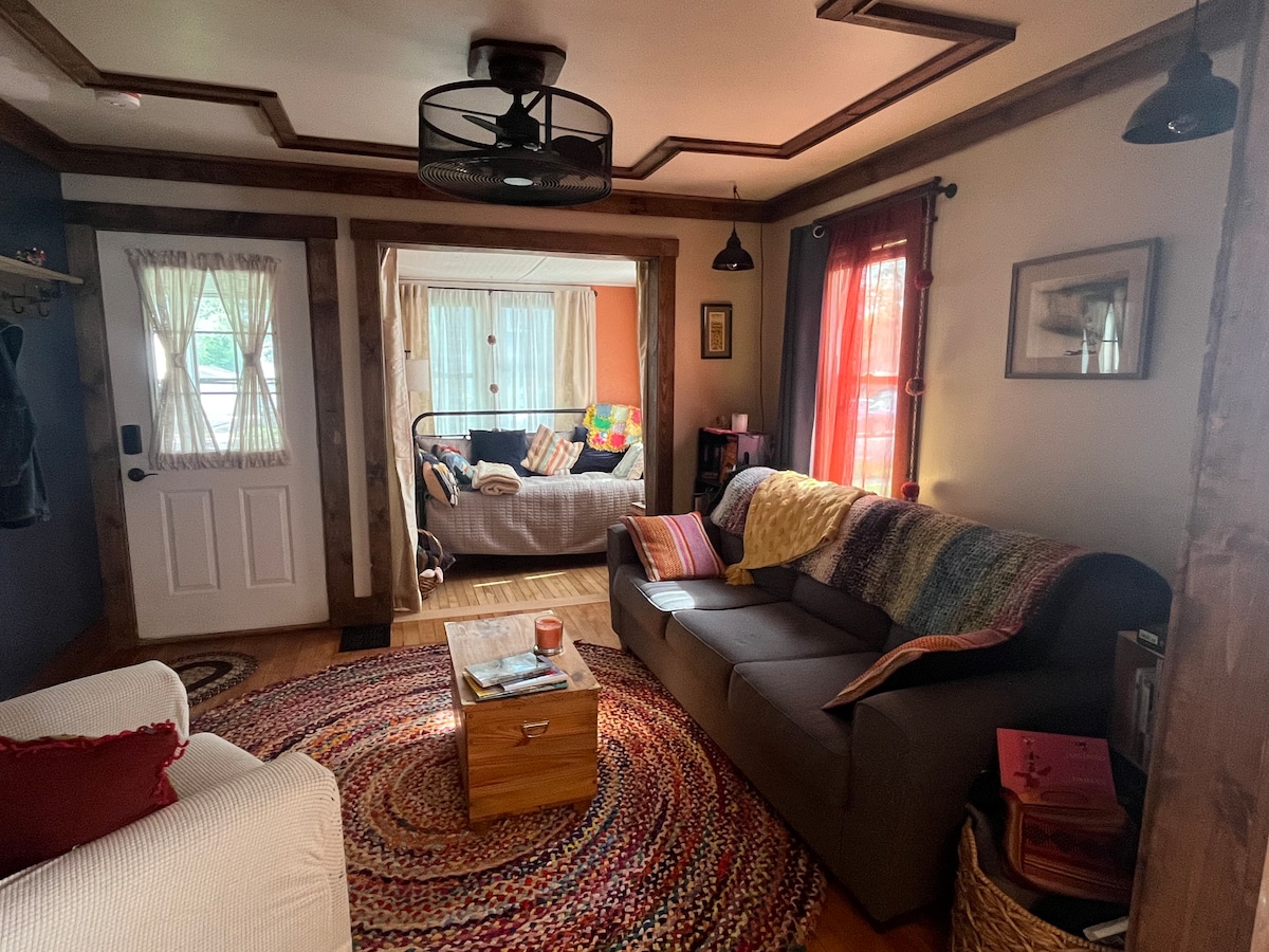 Before booking this unit please be aware there is an apartment above this one with wood floors. If you are sensitive to sound/noise this may not be a good fit. 1 queen bed, a private bathroom with a shower, and a workspace. . This unit is located in the lower level of the building. Appliances: Fridge, Microwave, Coffee Pot (included: coffee grounds, coffee creamer, disposable coffee cups, sugar packets, assortment of tea bags.).