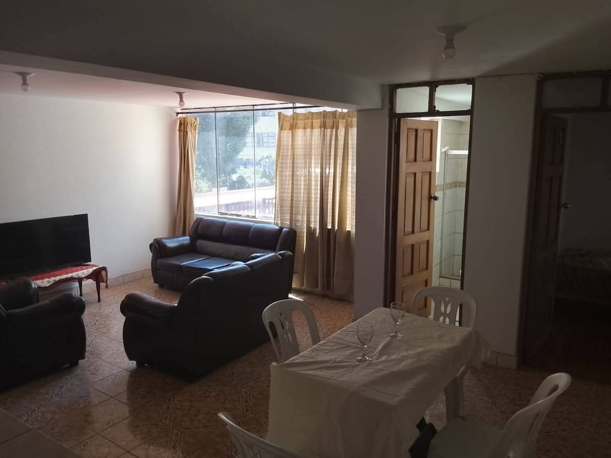 Acogedor minidepartamento amoblado y equipado en Puerto Maldonado, a pocos minutos de la plaza de armas. Ideal para familias, parejas o viajeros que buscan comodidad y tranquilidad, primer piso, cuenta con dos habitaciones, baño, ducha, sala-comedor, cocina, TV, refrigerador, muebles, internet Agradable vista al jardín y excelente ventilación. Acceso a áreas comunes, garaje nocturno. Perfecto para estancias cortas. Relájate con toda la familia en este tranquilo lugar para quedarse.