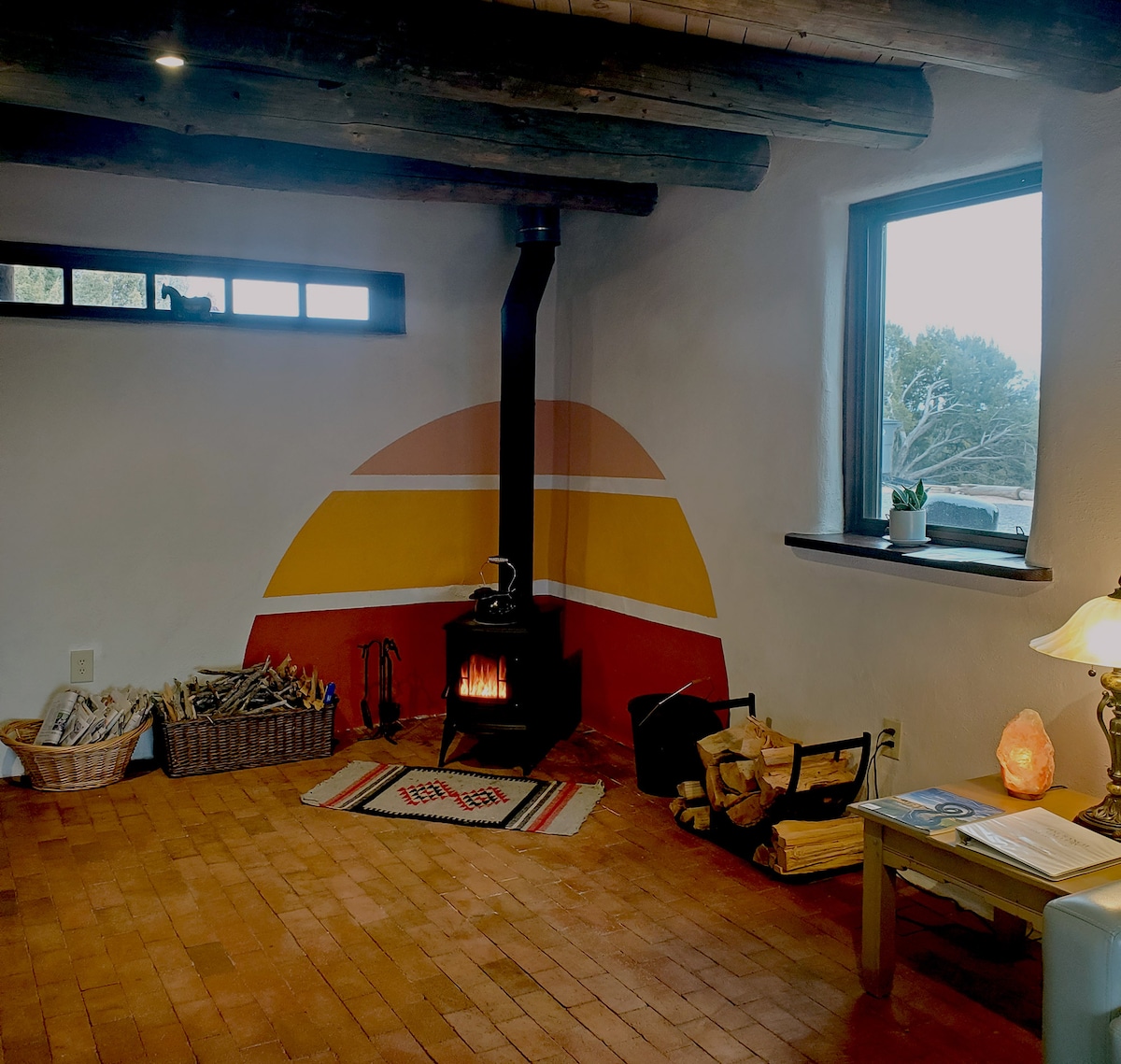 Rest and relax in the countryside on the Hat Ranch Gallery Compound. This thoughtfully designed desert home boasts amazing views of desert and mountains. Cozy up near the wood stove during the winter while you sketch or curl up in the hammock to stargaze year-round finding inspiration to work on your novel. This charming and creative space is peaceful and quiet, yet you're 20 minutes from the iconic city of Santa Fe. This adobe Casita is an Authentic Santa Fe Experience. No doubt about it.