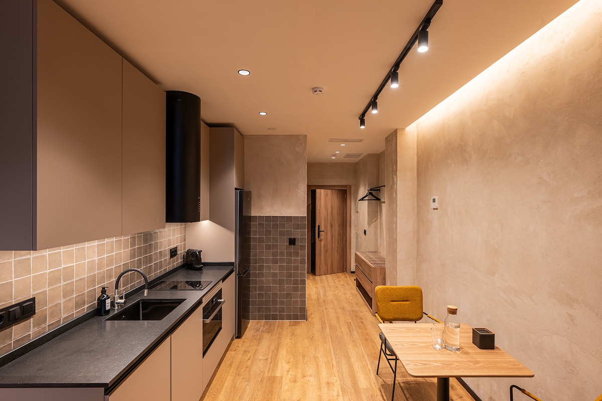 • Studio for up to 2 adults • Queen or double-size bed • Climate-neutral & fully carbon offset • Avg. 19 m2 • City views • Kitchenette • Access to a fully equipped shared kitchen • Access to shared laundry • Air conditioning • Regular professional cleaning • Local gym access included • Yoga mats & online yoga studio access included • Contactless access • Early check-in & late check-out (on request) • Fast WiFi • Smart TV • Free luggage storage • Baby crib available