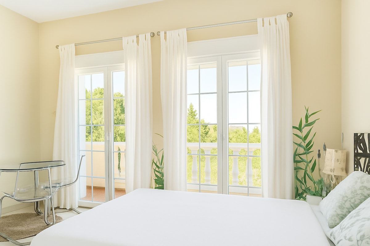 Preciosa y espaciosa habitación de 1 dormitorio con vistas al jardín en una elegante casa, baño completo con gran ducha, mesa escritorio, armario con caja fuerte, nevera, microondas, cafetera de cápsulas y Tv. En la casa disponemos de parking gratuito y zona de jardín. Existe la posibilidad de alojarse un invitado más por el precio de 35 eu noche.