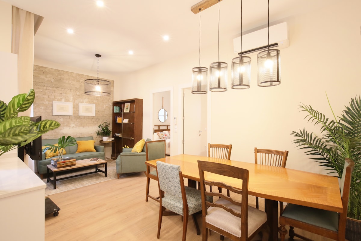 This luxurious apartment has been completely renovated to become the perfect apartment. It has been designed by one of the best architects in Madrid, mixing the classic character typical of this area with modern details, all dominated by simplicity and sobriety and incredible natural lighting. Every detail has been taken care of so that your stay is unique. It is a perfect apartment for families or business trips with capacity for 8 people.