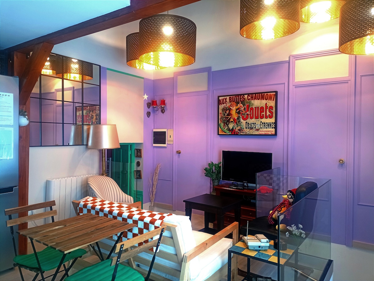 Bienvenidos a mi suite independiente! Se trata de una mini casa privada de unos 20m2 inspirada en el apartamento de Joey y Chandler de la serie F•R•I•E•N•D•S. Tanto si eres fan de la serie, como si buscas un lugar independiente, bonito y bien comunicado, este es tu sitio. Muy cerca del Metro, tranquilo y ¡con un altillo! Está pensado para dos personas, aunque hay un mueble-cama individual por si tienes que dormir una tercera. Total, podrían alojarse 3 adultos.