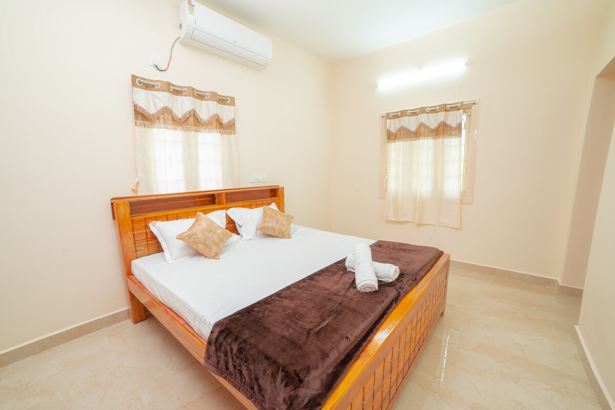 Bring the whole family to this great place with lots of room for fun. Relax with this peaceful place to stay with aircondition bedrooms - Independent -Special Rates for Long Stays 25% off 1 week month and - contact us for details - Nearby to Bus Stand, ELCOT IT Park, Apollo Hospital, HCL, Honeywell IT companies, shops, Hotels and restaurants -Suitable for long stay working professionals -Air conditioned Double bed, Lounge, Kitchen and bathroom, Modern cupboard, Electric Hotplate, hot water.