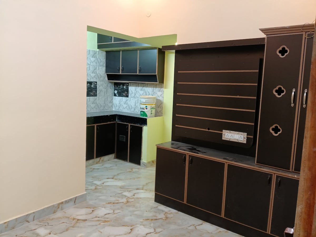 Cozy and modern 3BHK Airbnb just 2.5 miles from Madurai Railway Station🚉 Perfect for an enjoyable stay. 🏡 Fully furnished, 3 spacious bedrooms🛌with washing machine, fridge, fully equipped kitchen. Home has 8 ceiling fans🪭Has RO water🚰,iron box, exhaust fan, laptop work table, dining table, water heater, WI-FI🛜 a swing !__! Home has neem trees in all 3 sides. 🌳 Secure car parking. 🅿️ Living room and one bed room have smart TVs.📺 Flexible check-in &check-out time