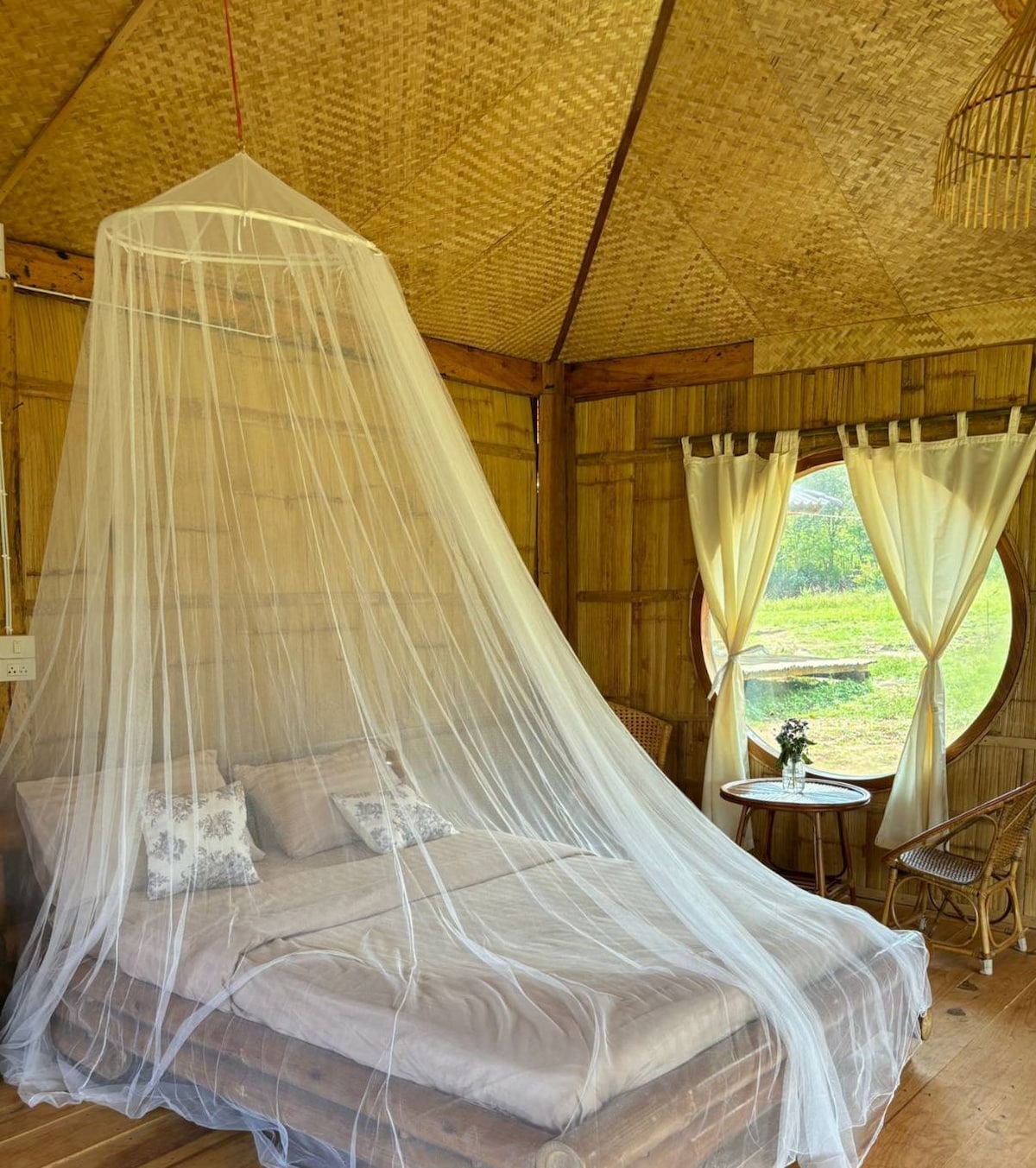 our bungalow is bamboo houses,the huts feature traditional grass roots. near the Karen hill tribe village, views of the jungle, a clam and peaceful camping - ground surrounded by waterfall,river and mountain. the house is suited for couples or friends with a gueen size bed and can add in 2 extra bed for family. you can book day trips and stay overnight.