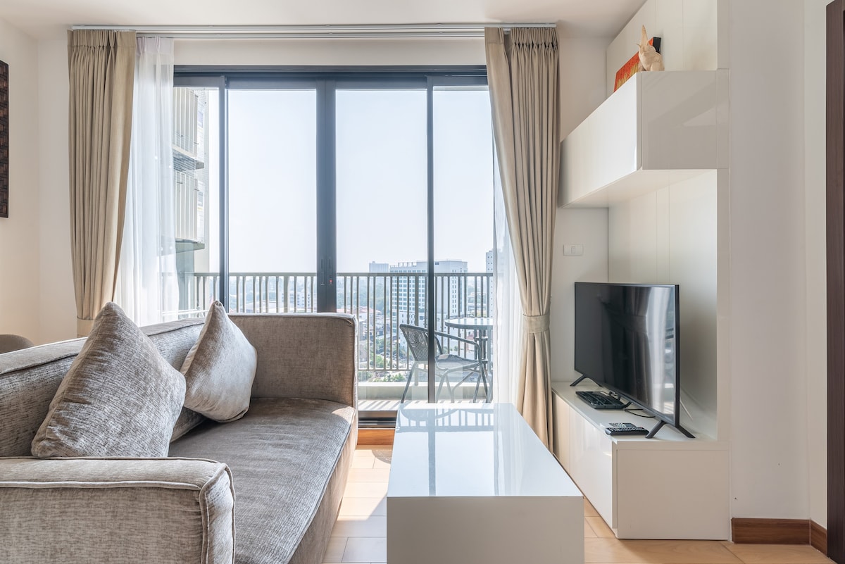 ✨ Modern Loft Style @ Center of Nimman! Stay in unparalleled style. This 31m² one-bedroom loft on the 4th floor offers a nice mountain view and chic, contemporary decor. You are surrounded by trendy places. Hang out at our signature rooftop pool and sky fitness while enjoying breathtaking sunsets—it's the perfect reward! You're in the center of the action: 5 min walk to One Nimman/Maya; 2 mins to chic bars/cafés. Complimentary indoor parking and a lovely garden. Book your stylish stay today!