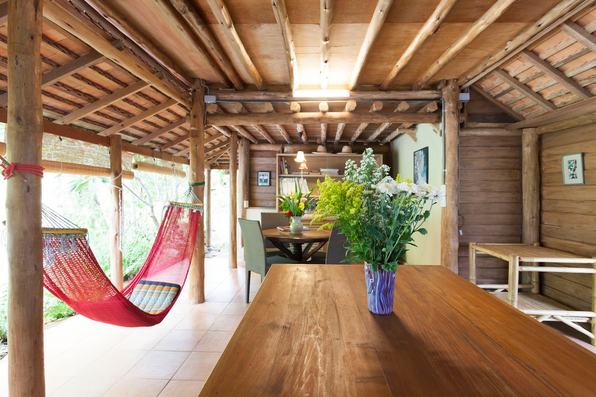 This unique home is situated in lush, green privacy on the Ping river, minutes to Thapae Gate, shopping malls and the Nimmanhaemin area. There are two bedrooms with en suite bathrooms, covered outdoor decks & a pool. It's a perfect get away for couples, friends and family. All bedrooms have air conditioning, WiFi and cable TV. We offer a free pick up service from CNX airport, bus/train stations and 5 km from central Chiangmai Additionally: astrology readings are available on request.